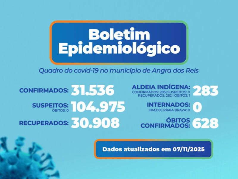 Angra contabiliza 628 mortes pela doença, e nenhum óbito está sob investigação. Há 104.802 casos suspeitos (síndromes gripais). Com a desativação do Centro de Referência Covid-19, o Hospital Municipal da Japuíba (HMJ) e o Hospital de Praia Brava continuam disponíveis para atender os casos de hospitalização por Covid-19. No momento não há pacientes internados.