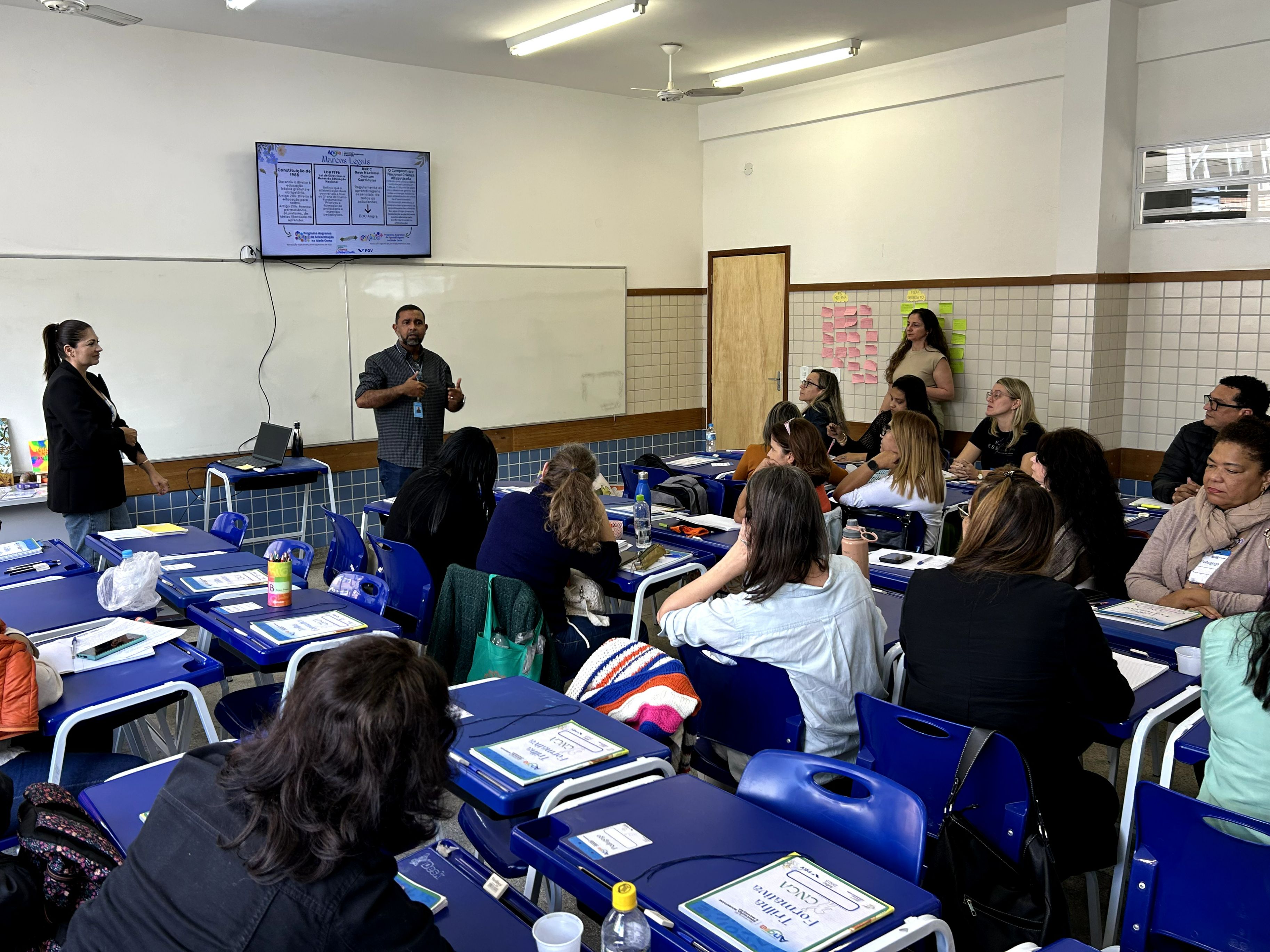 A Prefeitura de Angra dos Reis, por meio da Secretaria de Educação, Juventude e Inovação, deu início nesta semana à etapa presencial das trilhas formativas do Compromisso Nacional Criança Alfabetizada (CNCA). A ação envolve gestores, pedagogos e auxiliares de direção de 64 unidades da rede pública municipal, incluindo escolas do 1º ao 5º ano e CEMEIs. O programa é uma iniciativa do Governo Federal, em parceria com a Fundação Getúlio Vargas (FGV), e busca garantir que todas as crianças estejam alfabetizadas até o final do 2º ano do Ensino Fundamental, além de promover a recomposição das aprendizagens dos alunos do 3º, 4º e 5º anos.