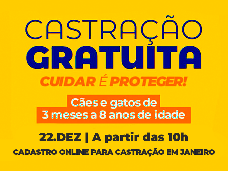 Inscrições serão feitas on-line a partir das 10h do dia 22 de dezembro; para agendar a cirurgia, o tutor deve apresentar RG, CPF e comprovante de residência