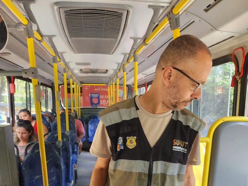 As equipes da Secretaria de Segurança Pública/Superintendência de Mobilidade Urbana e Transportes Concedidos, em conjunto com agentes do Programa Estadual de Integração na Segurança (Proeis), estão realizando vistorias internas nos ônibus do transporte coletivo municipal. A iniciativa ocorre de forma contínua em diferentes linhas e busca garantir mais segurança e respeito no dia a dia dos usuários.