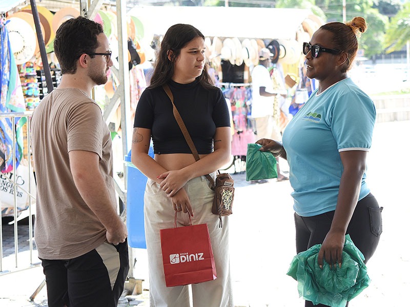 Ação distribuiu sacolas biodegradáveis, incentivando os turistas e moradores a recolherem seus resíduos e descartá-los corretamente