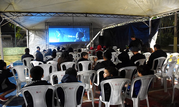 Filmes, pipoca e refrigerante animaram as crianças na Praça da Porteira e no Ciep João Gregório Gali...