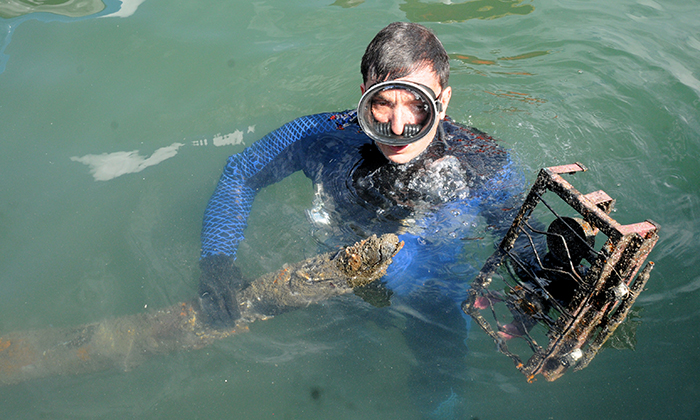 Pneus, cordas, madeiras e detritos em geral são retirados do mar em iniciativa realizada por parceri...
